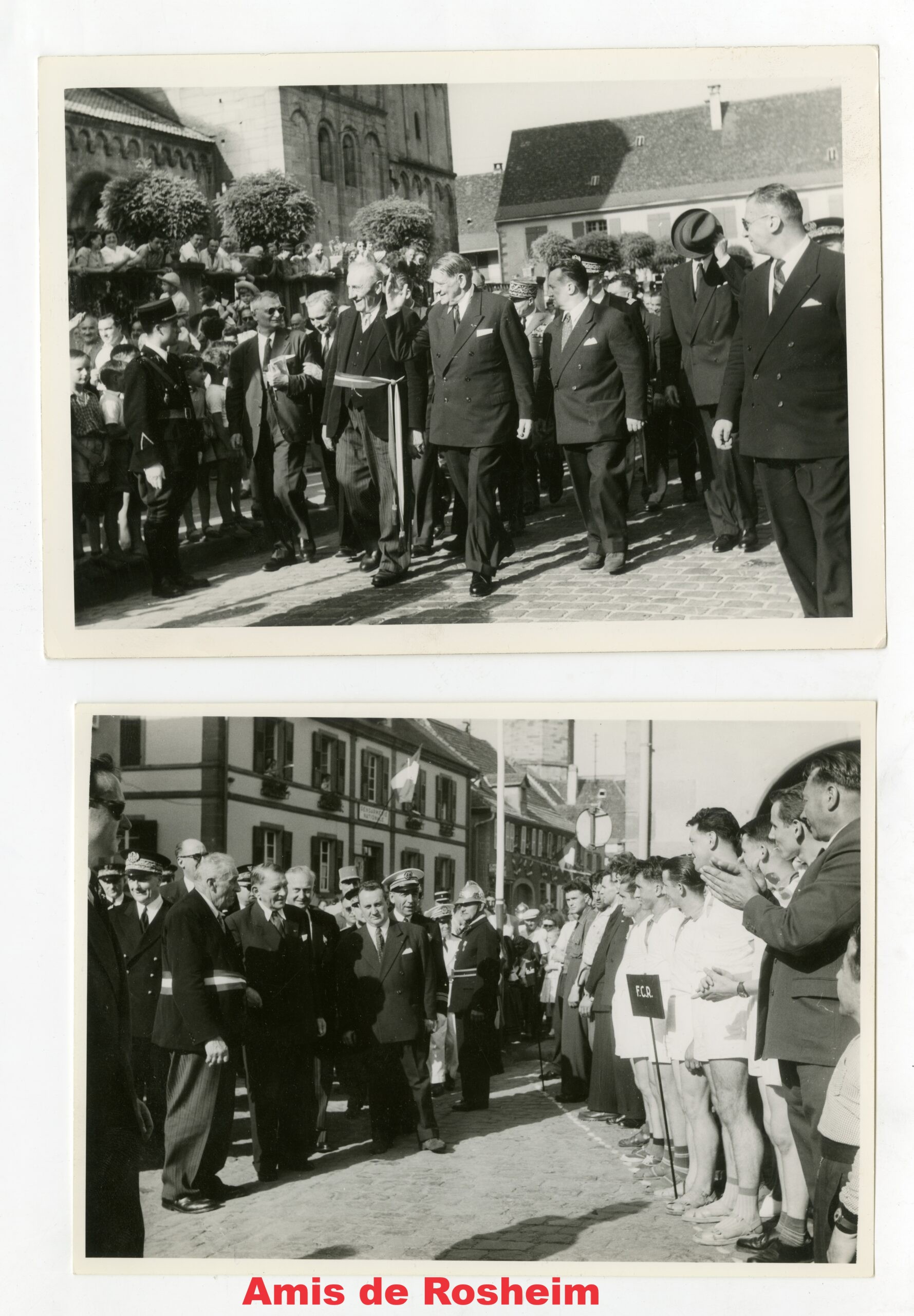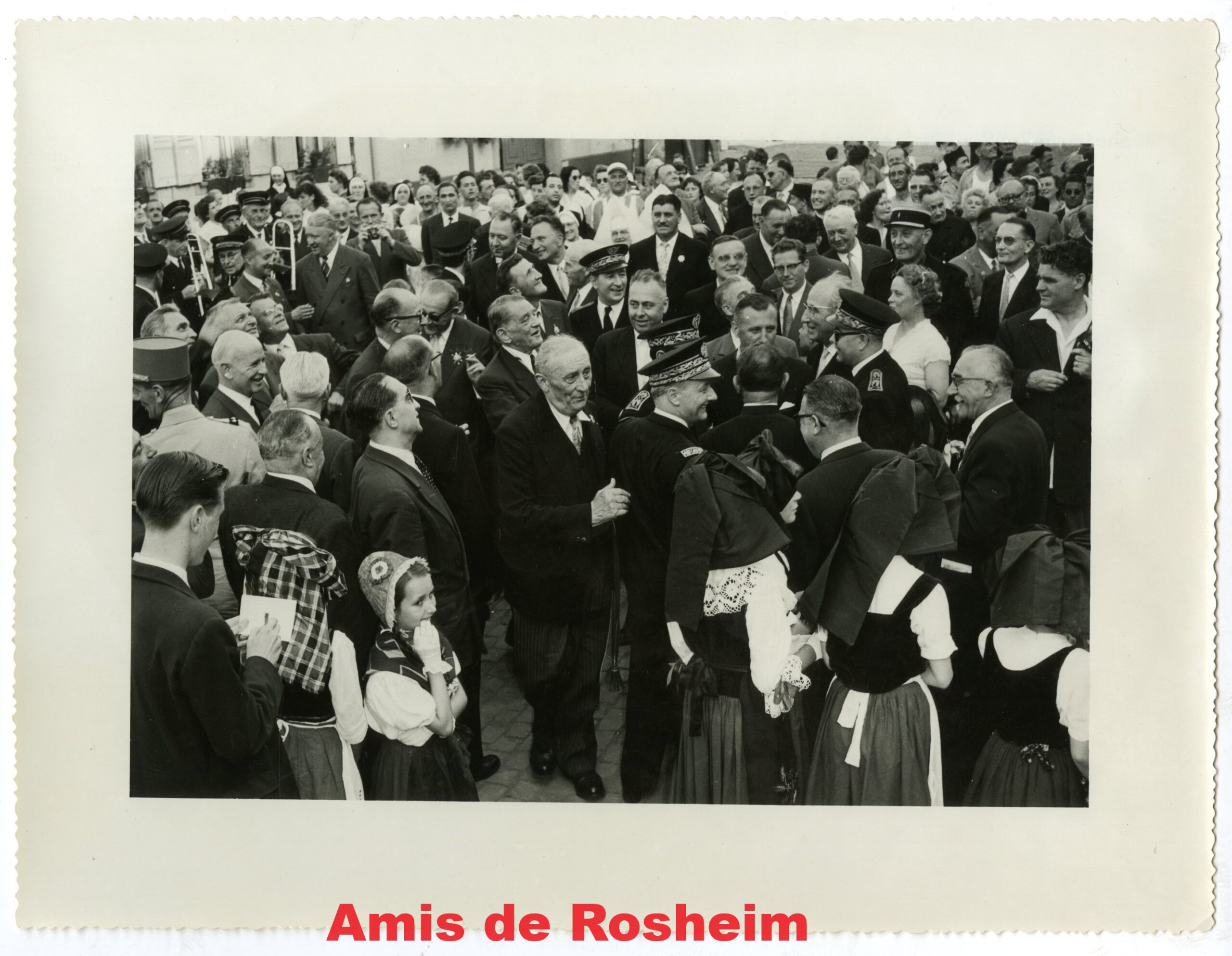 Rosheim en liesse a acclamé le président Coty. La charmante cité de Rosheim s’est montrée digne de l’honneur qui lui a été fait. Cette journée de la visite officielle du président de la République restera gravée dans les cœurs des Rosheimois qui ont voulu rendre hommage au chef de l’Etat, mais aussi prouver leur sympathie spontanée à la personne même du président qui a su trouver par sa simplicité et sa dignité comme aucun autre une place dans le cœur des Alsaciens.