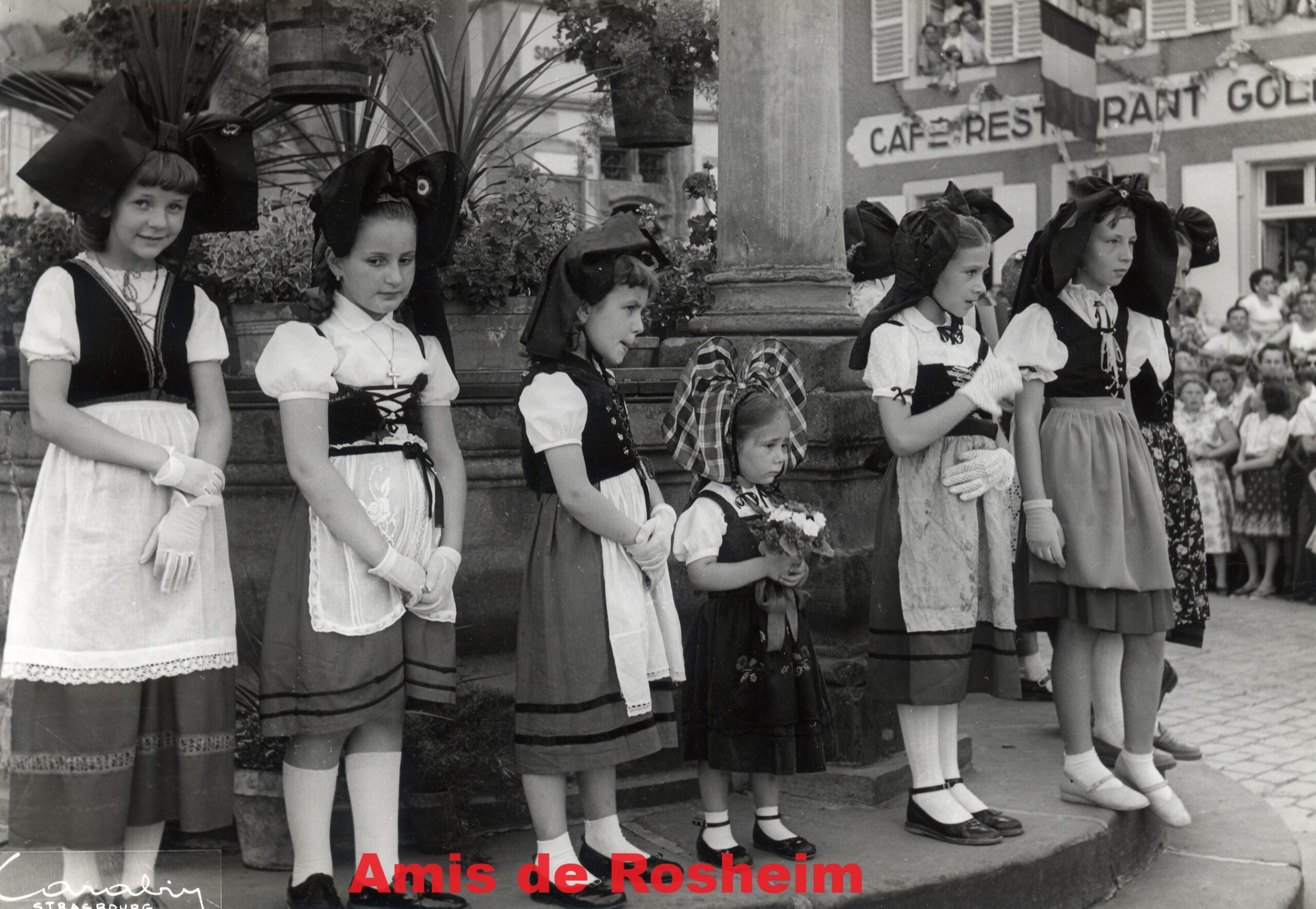 Pour cet accueil, Rosheim avait revêtu ses plus beaux atours et toutes les maisons arboraient des drapeaux tricolores, des guirlandes étaient étendues à travers la rue, rien ne fut trop beau pour l’accueil de M. René Coty. Dans les rues, les enfants des écoles de Rosheim, Bischoffsheim, Griesheim et Rosenwiller attendaient fiévreusement le moment d’agiter leurs petits drapeaux lors du passage du président.